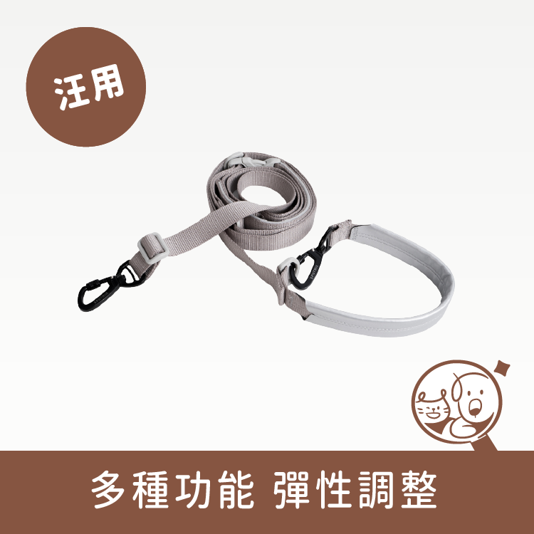 長短牽繩能夠自由調整長度,在斜背功能上更添加手把設計,面對突發狀況也能立即控制,並能透過快速拆解扣具,瞬間變換成短牽繩,掌控安全距離。